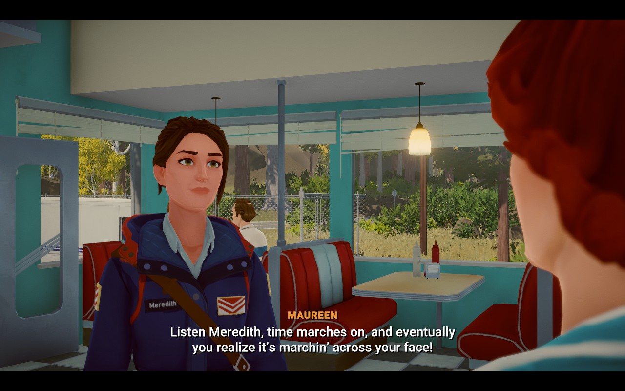 A minor complaint I have with the game is that I would have liked the possibility of interacting with background NPCs (for example pedestrians in the shopping street or customers from the diner). They felt like props, especially in the diner where you could see they were just sitting there and not eating or talking to others at their table. Another gripe I had was that I felt I couldn’t progress the Lori friendship storyline. Without spoiling too much, the option the game offered felt out of place for a friendship between a 16-year-old and my 40-year-old-ish character, given we’d just met.